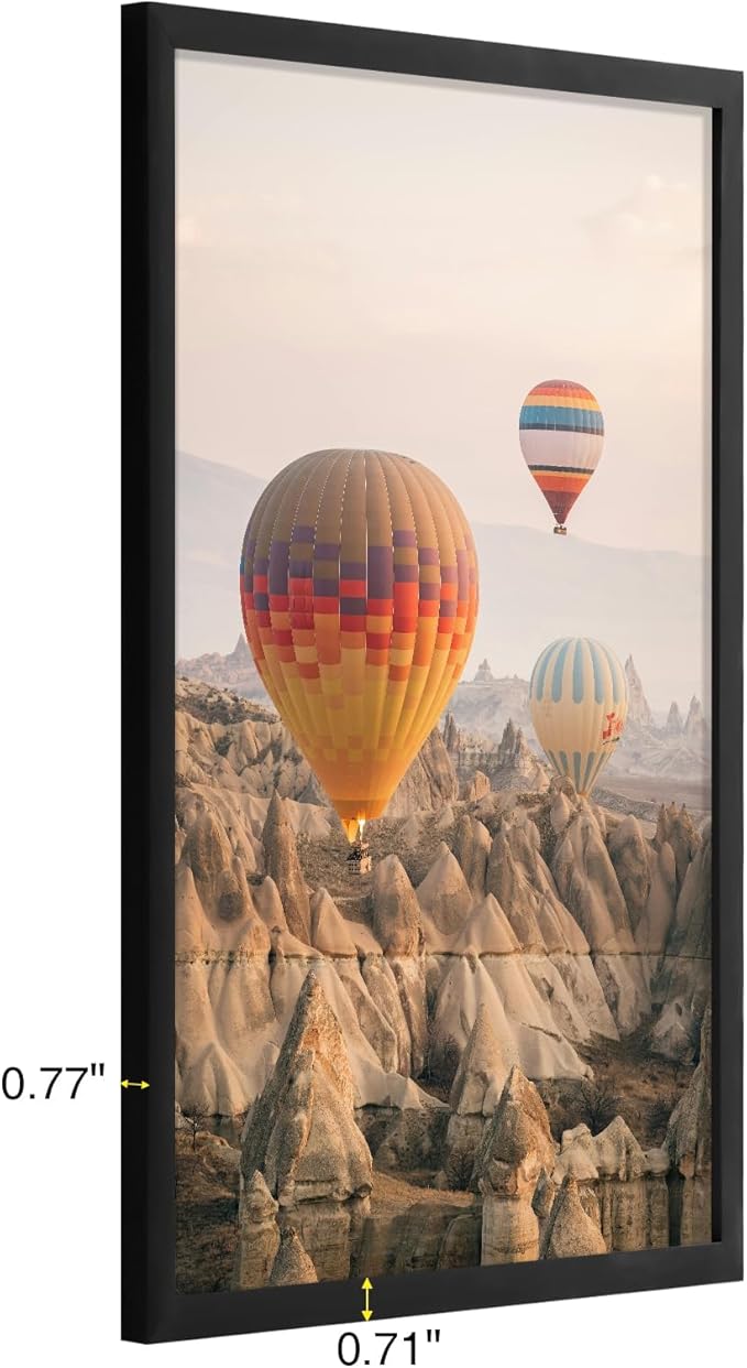 - Versatile Design: This black frame accommodates 12x18 photos with mat or 16x24 without mat. The mat is slightly reduced by 0.5 inches to keep photos in place. Suitable for both horizontal and vertical display, it complements various decor styles