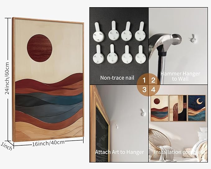 - Chic Bohemian Vibes: Elevate your decor with this stunning set of 3 framed canvases that combine bohemian and mid-century modern styles, featuring eye-catching geometric designs