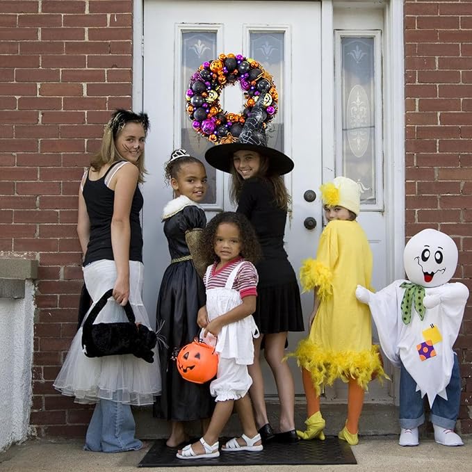 - 【Gothic Dark Aesthetic Design】 This 13.8-inch wreath incorporates the Gothic style of Halloween, featuring spider-adorned orbs and purple-orange pumpkins to create a mysterious atmosphere, delivering a professional-grade Halloween horror scene for porches.