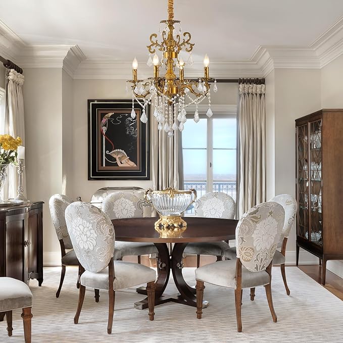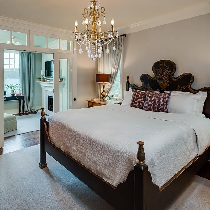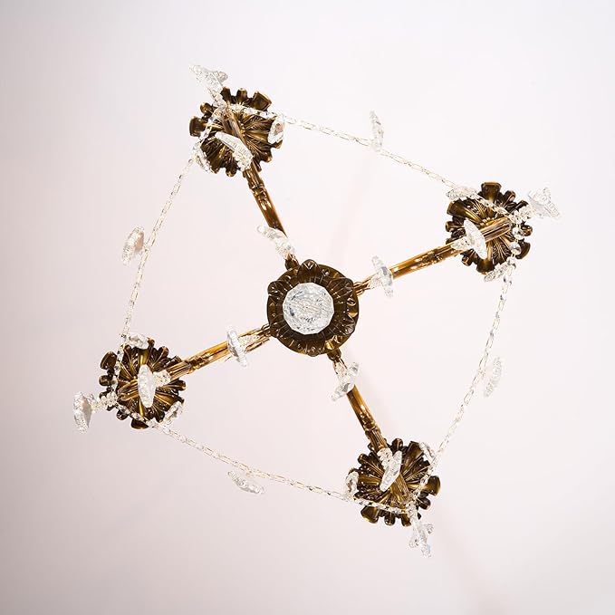 - This 4 Arms Crystal Candle Chandelier is a classic statement piecen with a beautiful antique gold finish, giving it a rich, old-world charm that complements classic, vintage, and even some transitional decors.