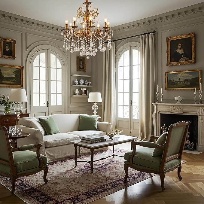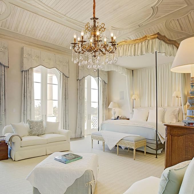 - This 8 Arms Crystal Candle Chandelier is a classic statement piecen with a beautiful antique gold finish, giving it a rich, old-world charm that complements classic, vintage, and even some transitional decors.