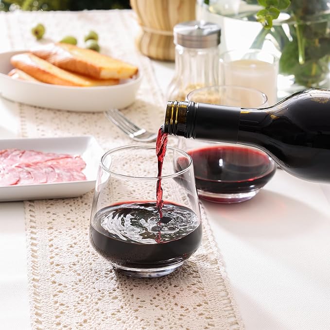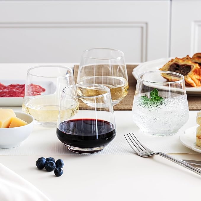 Stemless Wine Glasses Set of 4, 13.5oz Red White Wine Glasses for Daily Use, Hosting, Home Bar, Evening Party, Birthdays, Housewarming Gift, Clear