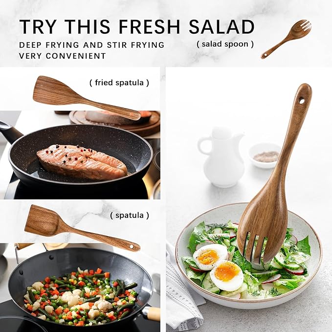 - PRACTICAL AND USER-FRIENDLY:Enjoy the balance and control offered by our wood kitchen utensils,Whether stirring or flipping,they make cooking a delightful experience