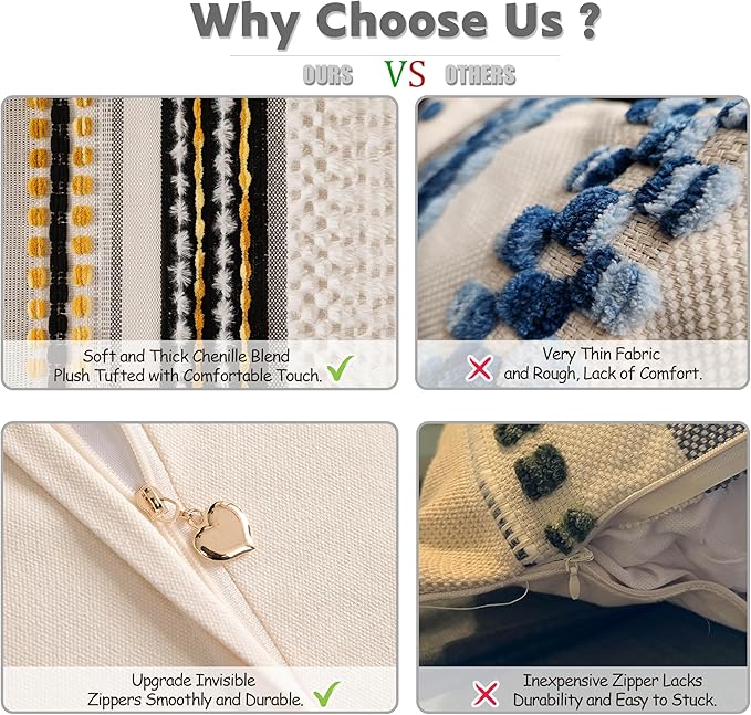 - PREMIUM QUALITY FABRIC: Made from a high-quality chenille and woven polyester blend, the throw pillow covers are ultra-soft and durable. The tufted design adds texture and dimension, creating a luxurious and inviting atmosphere.