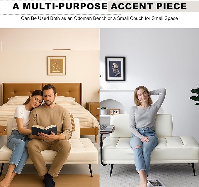 Sofa,Bed Bench,Small Spaces Furniture,Polyurethane Leather,Wood Frame,High Density Sponge Infillings,360-Degree Swivel Tray,Black Metal Leg (Beige)