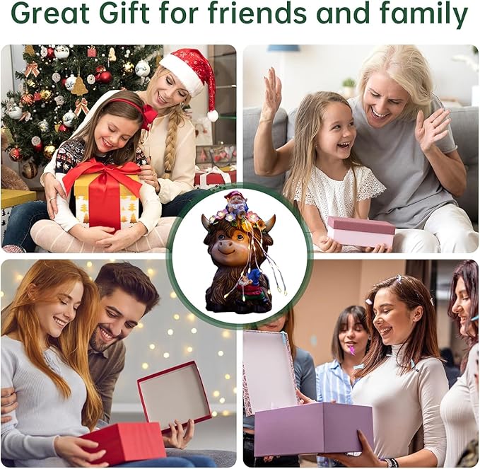 - 【High-quality Workmanship】Crafted from the durable resin material, these garden highland cow gnomes statue are well sculpted and hand-painted to capture every exceptional details that is waterproof and fade-resistant, IP65 Waterproof Material
