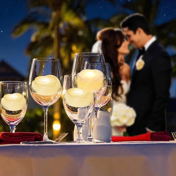 - Versatile in Décor: Stylish and adaptable. Whether it’s a wedding, pool party, dinner table, or a cozy bath, these ivory rose flameless floating candles battery operated fit right in, creating a dreamy and inviting atmosphere wherever you use them