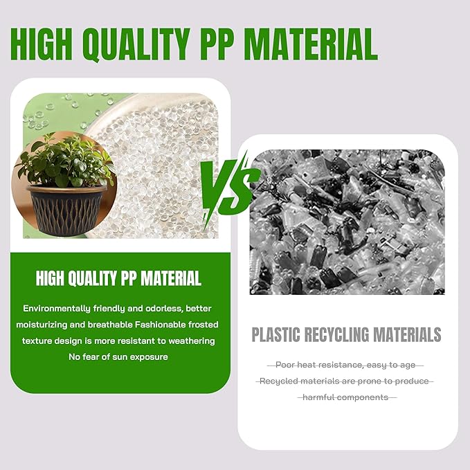 - 【High-Quality Meterial】Crafted from premium PP plastic, these pots offer the best of both sturdiness and lightness. They’re easy to move while resisting cracks, fading, and UV damage, ensuring long-term use without compromising on style or durability.