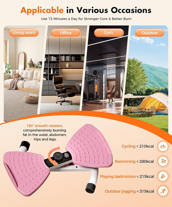 - 【Smart Digital Counter】Exclusive smart system auto-tracks reps and records workout time in real time, letting you master your training progress precisely. Say goodbye to manual counting—this waist twister machine keeps you on top of every workout.