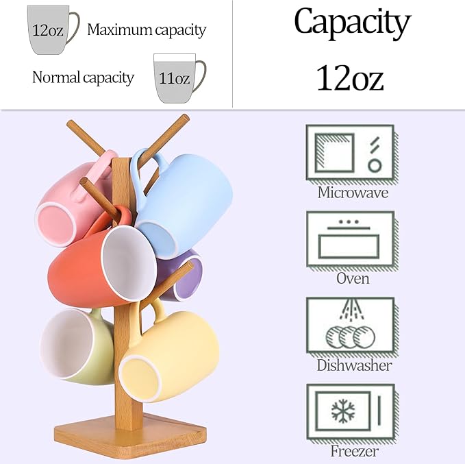 - Matte Porcelain Coffee Mugs: Are you still looking for practical and comfortable coffee cups? The 12oz coffee mugs have plenty of space, perfect for serving a full cup of coffee or hot chocolate to start your enjoyable day! This coffee mugs set of 6 ceramic mugs is perfect for home and office use, allowing you to enjoy leisure time with friends in different scenarios!