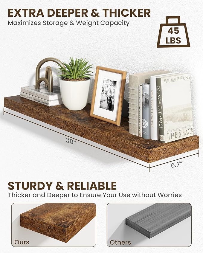 - Sturdy & Reliable: Robust construction floating shelves for wall supports everyday items (books, decor, bathroom essentials, kitchen spices) with stability, combining practicality with timeless style