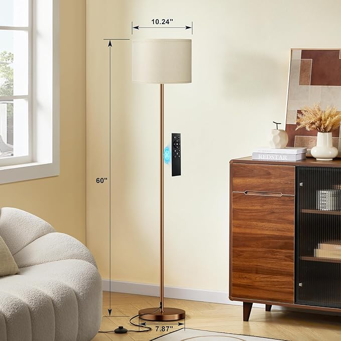 Ambimall Floor Lamps for Living Room with Remote Control and Stepless Dimmable Colors Temperature & Brightness, 9W Bulb Included(Beige Lampshade & Brown Pole)