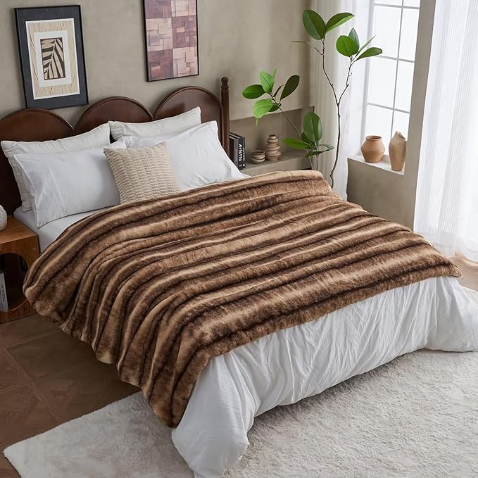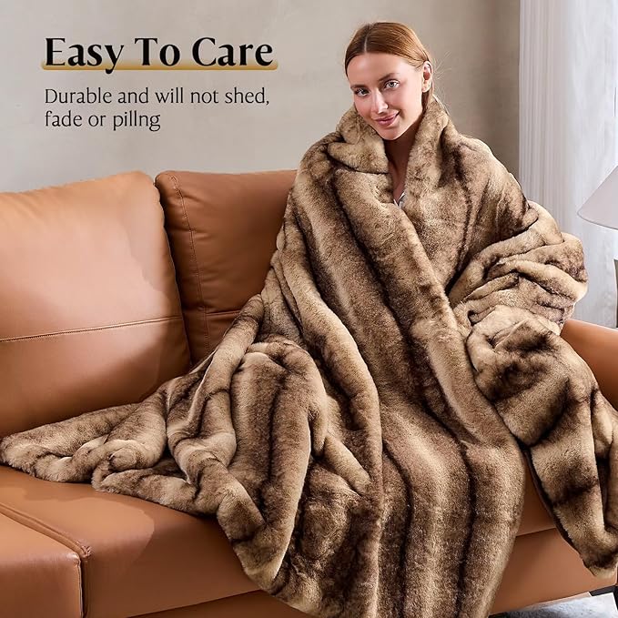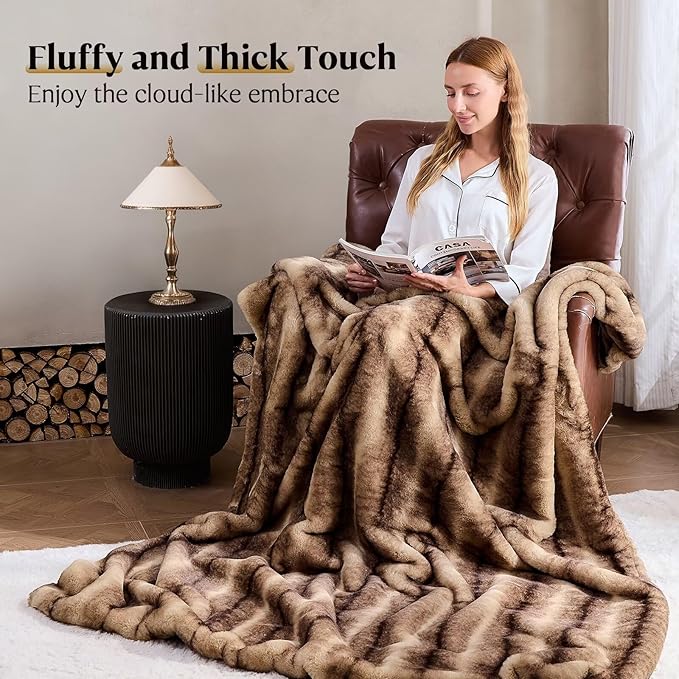 Luxury Faux Fur Blanket - Soft Warm Plush Blankets for Couch Sofa Bed, Fluffy Thick Throws for Bedroom, Office, Living Room, Decorative Reversible, Not Easy to shed - 70"x90", Brown