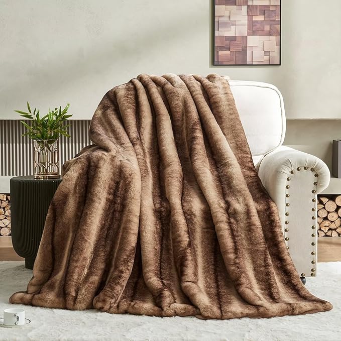 Luxury Faux Fur Blanket - Soft Warm Plush Blankets for Couch Sofa Bed, Fluffy Thick Throws for Bedroom, Office, Living Room, Decorative Reversible, Not Easy to shed - 50"x60", Brown