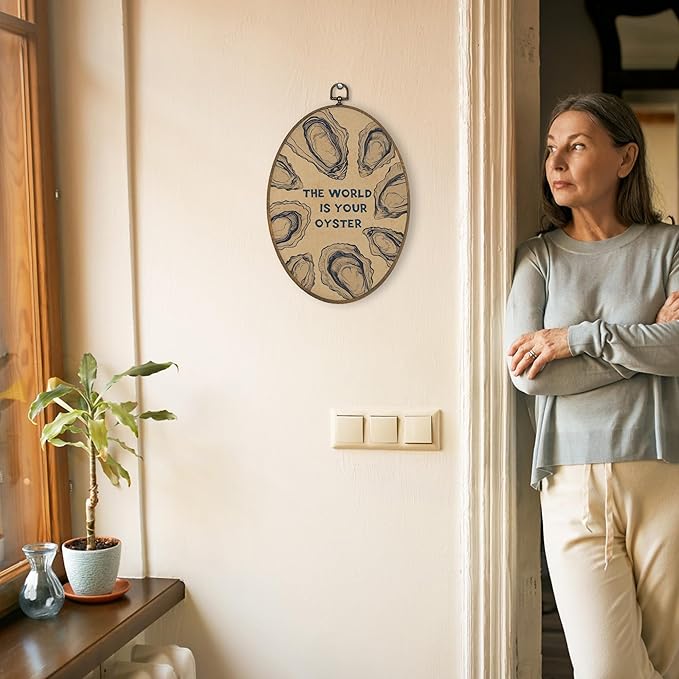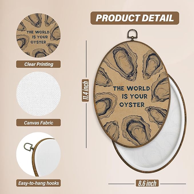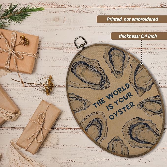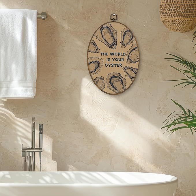 XBBMGG Vintage Oyster Wall Art Decor, Inspirational Retro Beach Oval Wall Hanging Decor, Nautical Ocean The World Is Your Oyster Framed Canvas Prints for Living Room Bathroom Decorations, 8.6 x 11.4 inch