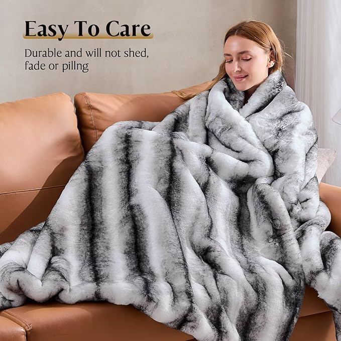 - Effortless Care, Perfect Gift: Our luxurious faux fur blanket is incredibly easy to clean. Simply machine wash on a cold gentle cycle, then hang dry or tumble dry on low. It makes a perfect gift that adds instant luxury to any bedroom or living room
