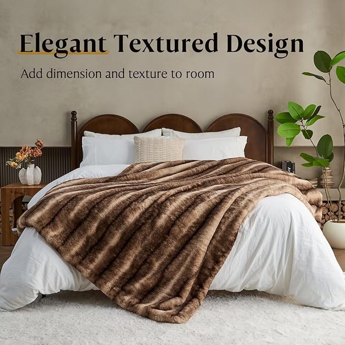 Luxury Faux Fur Blanket - Soft Warm Plush Blankets for Couch Sofa Bed, Fluffy Thick Throws for Bedroom, Office, Living Room, Decorative Reversible, Not Easy to shed - 60"x80", Brown