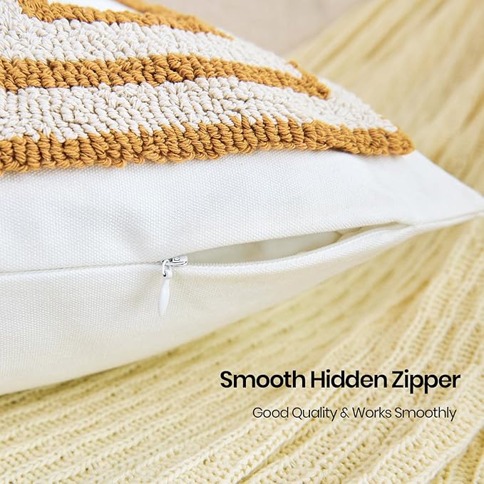 HOdo Home 2PCS Pillow Covers-Throw Pillow Cover,Tufted Boho Jacquard Pillow Covers,Farmhouse Decorative Pillow Cover,Pillow Cases for Couch,Sofa,Bed,Chair,Living Room,Home Decor(18x18inch )