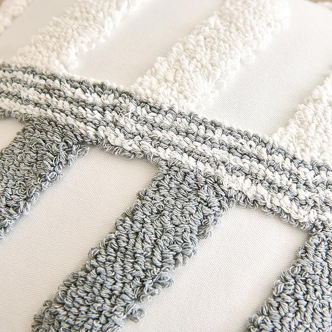 HOdo Home 18x18 Throw Pillow Covers, 2PCS Tufted Boho Jacquard Pillow Covers,Farmhouse Decorative Pillow Cover,Pillow Cases for Couch Sofa Bed Stylish Decor, Simple Textured Cushion Sham