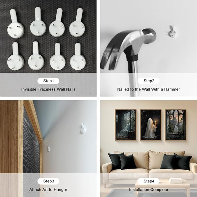 - 【Halloween Cute Ghost Wall Art】This set of three framed paintings features a charming and whimsical take on Halloween ghosts. The soft, spectral imagery creates a spooky yet cozy atmosphere, perfect for decorating during the Halloween season or for adding a touch of mysterious charm to your home year - round. It can be a great conversation starter and a unique addition to your holiday decor collection.