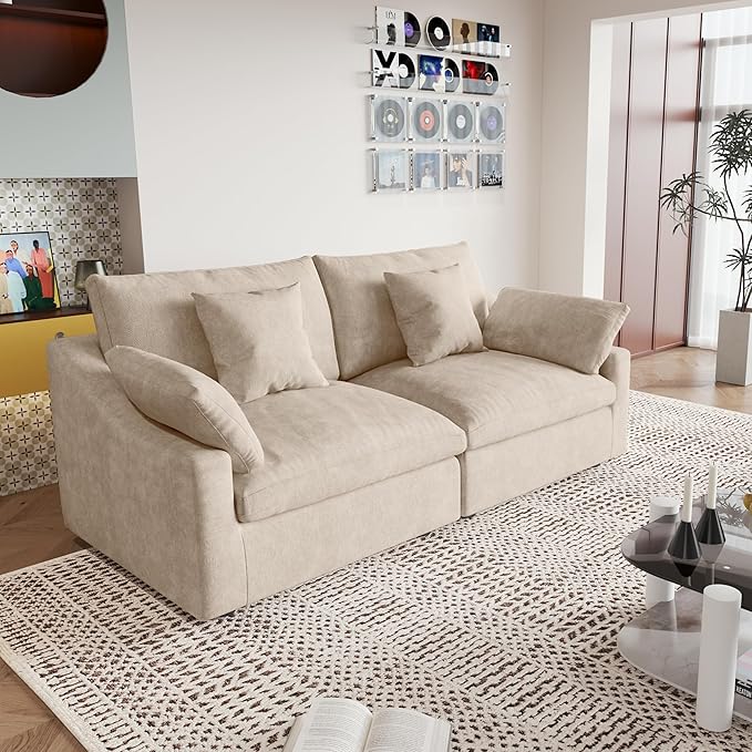 - ⛅[Comfortable Cushions]The cushion of this modular sofa is filled with down and velvet, increasing the comfort and rebound performance of the sofa cushion, bringing you a more comfortable sitting and lying feeling, allowing you to relax completely on the cloud sofa.
