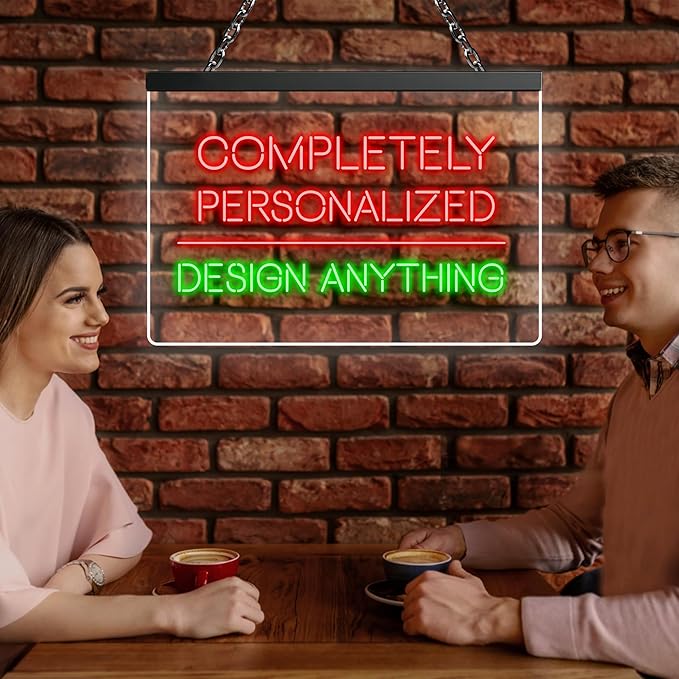 - Wide range of customizable bar signs for every space and mood. Choose from 1 or 2 color personalized neon bar signs, perfect for any custom pub sign or personalized beer sign. Available in 6 LED colors—blue, green, yellow, red, pink, and white. Each sign supports up to 2 colors, letting you personalize your home bar with the perfect mix.