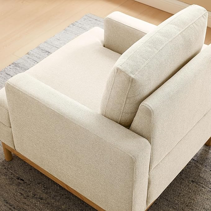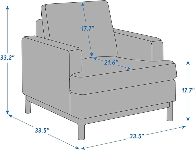 - Mid-Century Modern Accent Chair: VANOMI's accent chair features a square silhouette with clean lines and solid rubberwood legs, offering a mid-century modern aesthetic. With a width of 33.5 inches, this armchair provides comfortable seating while complementing various interior styles.