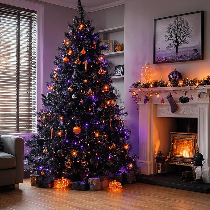 Dazzle Bright Halloween String Lights, 600 LED 196 FT Waterproof Black Wire String Lights with 8 Lighting Modes, Halloween Decorations Outdoor for Party Yard Garden Decor, Purple and Orange