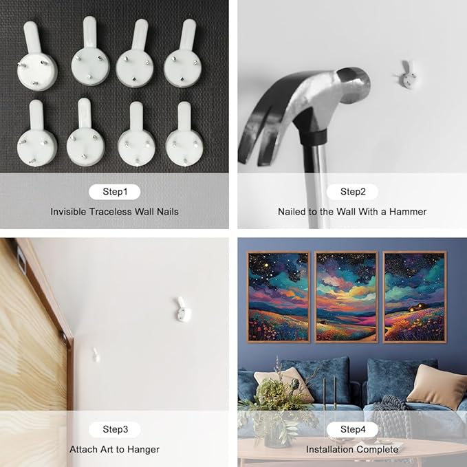 - 【High Quality and Eco-friendly】This set of colorful Starry Night wall decor is made of high-quality canvas and high-definition printing technology,featuring non-fading ink and waterproof canvas,with PS frames that are not easily damaged and can be used for a long time