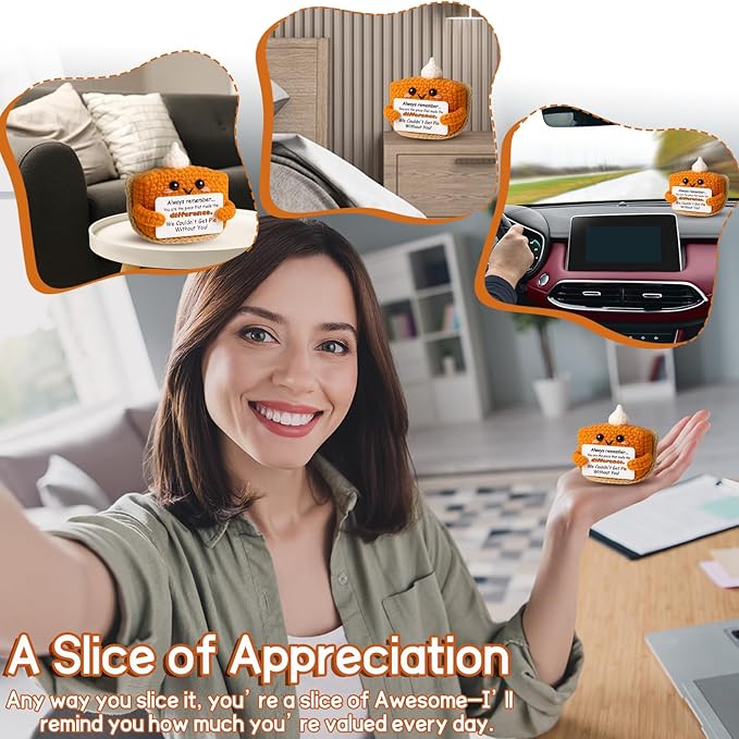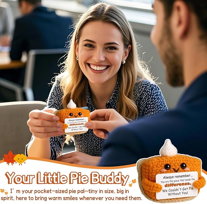 - You Made the Difference: This mini crochet pumpkin pie features a heartfelt message: “We Couldn't Get Pie Without You!” — a creative, pun-filled way to express sincere gratitude to someone special.