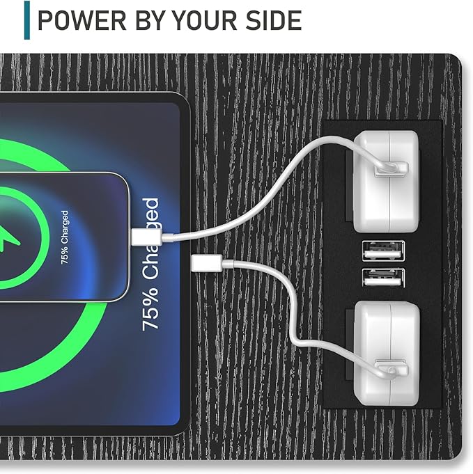 - [Integrated Charging Station]: This end table features an integrated charging station equipped with two standard power outlets and two USB ports. This setup enables you to charge up to four devices at the same time, ensuring your smartphones, tablets, smartwatches, and other electronics are always close at hand and powered up.