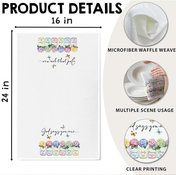 Christian Kitchen Towel, Waffle Weave Microfiber Scripture Hand Towel, God Says You are Bible Verse Farmhouse Decor for Kitchen Bathroom, Inspirational Gift for Women