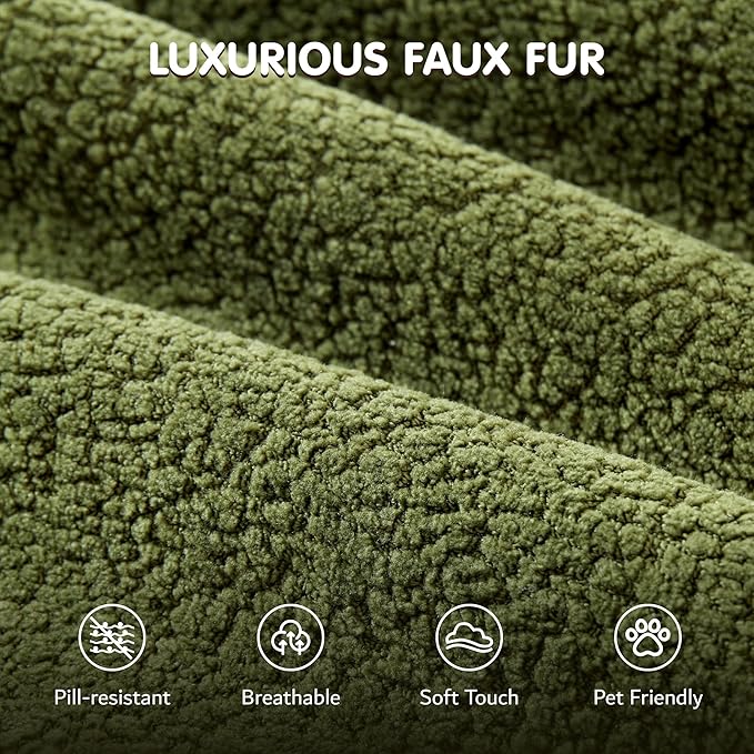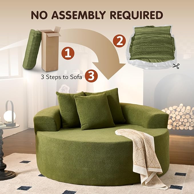 ovios 58" Oversized Round Chair Lounge Chaise Indoor, No Assembly Required, Cloud Large Circle Chair with Plush Fuax Fur, Fluffy Modern Sleeper Sofa Bed for Reading Yoga, Green (Cloud Velvet)