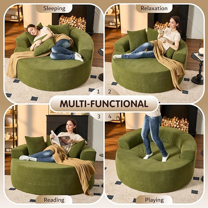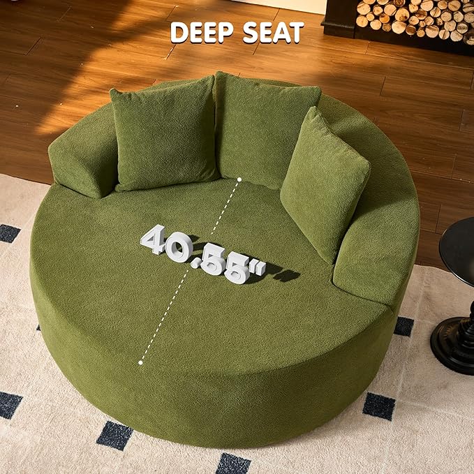 - Oversized Leisure Round Chair: Equipped with 10-inch wide square arms, providing loose and leisurely arm support. The 58" W*40" D seating is spacious enough for curling up, reading a book, or napping on the sofa.