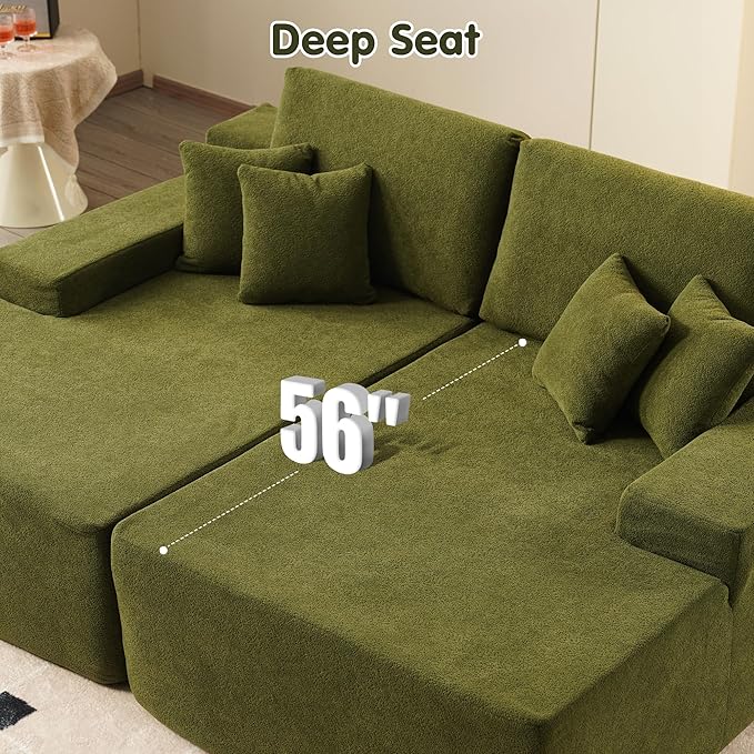 ovios 81" Oversized Sectional Double Lounge Chaise with Cloud Plush Sofa Bed, No Assembly Required, Fluffy Modern Sleeper Loveseat Chair for Indoor Living Room Bedroom Reading, Green (Cloud Velvet)