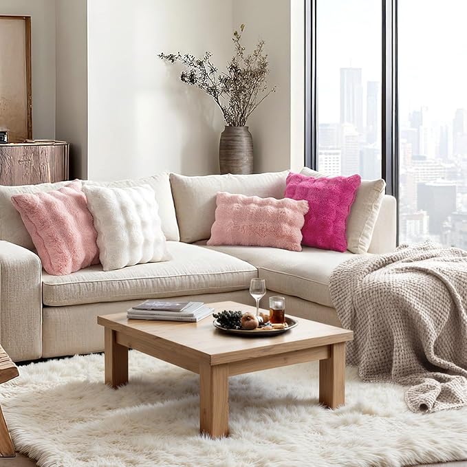 - Cloud-Like Touch:The deep, crinkled fur feels like stroking a cloud bunny. Light dances over the waves, making your sofa glow with cozy luxury. Just one squeeze melts away stress!