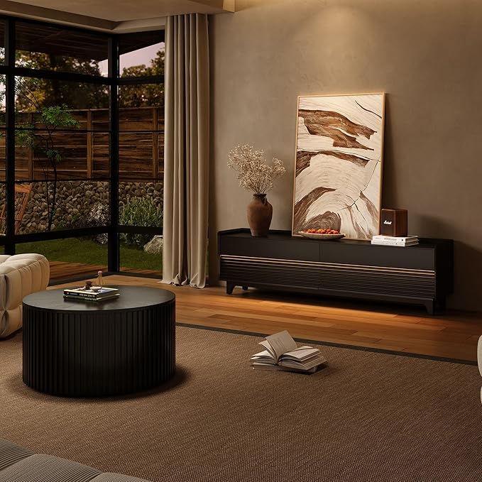 - Integrated LED Lighting: Enjoy the convenience of built-in LED lighting. The warm, 6-level adjustable lighting with remote control enhances the visual appeal of your TV console and makes your displayed items stand out