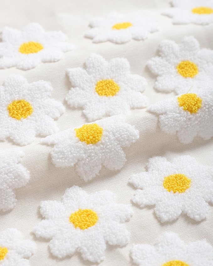 - Handmade Punch Needle Design: Intricately embroidered white daisy motifs with vibrant yellow centers create a cheerful and cozy vibe.