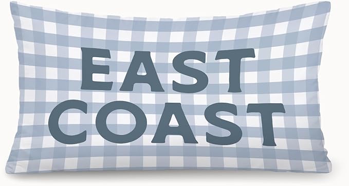 Coastal Beach Girls Room Decor 12x20 Pillow Cover, East Coast Preppy Trendy Gray and White Plaid Decorative Lumbar Pillow Covers for Boys Bedroom College Dorm Sofa Couch