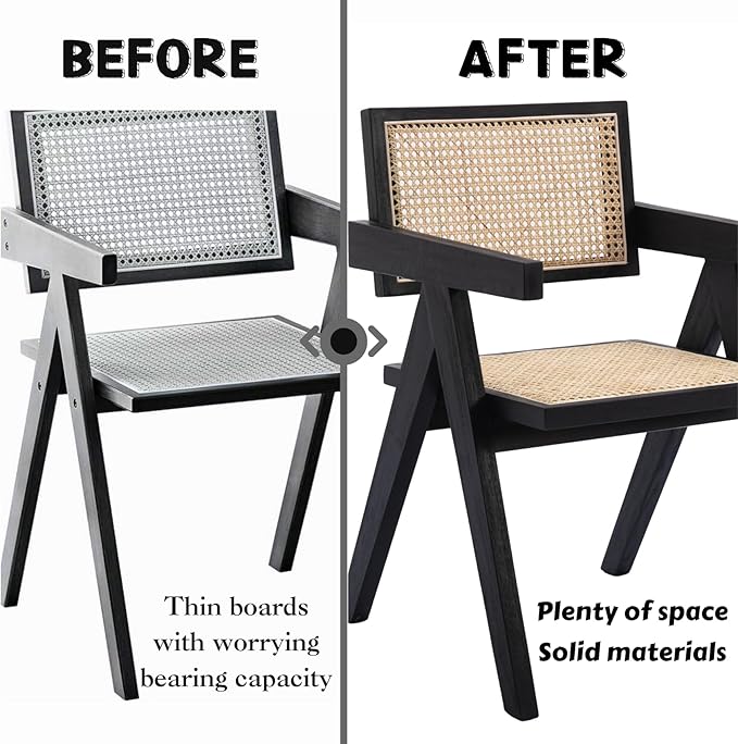 - Simple, Tool-Less Assembly: Pre-drilled holes and straightforward hardware allow quick setup without tools. Easily assemble your black cane chair and start using it right away-ideal for those who value sustainable, artisan-made wood dining chairs