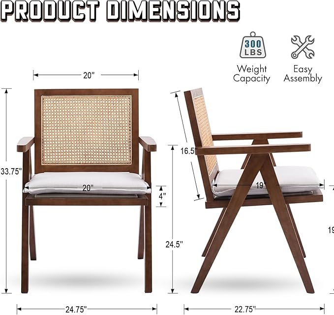 - Floating Back Design: The open-weave rattan back and minimalist frame make this rattan accent chair ideal for boho, mid-century or Scandinavian spaces. Walnut wood legs contrast beautifully with natural fibers, elevating kitchen tables or home office