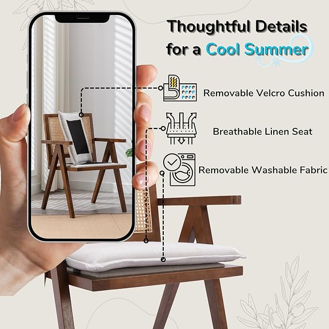 - Detachable Cushion & Arm Support This dining room chair with arms features a machine-washable linen cushion (secured by Velcro) for easy maintenance. The supportive armrests make it ideal for family gatherings or afternoon tea sessions