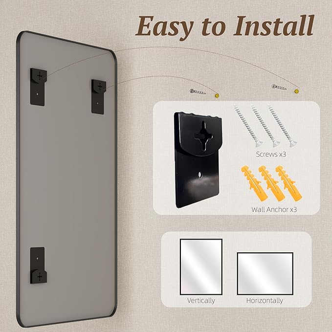 - Easy Installation: This wall-mounted mirror comes with instructions and all necessary installation accessories, making it quick and easy to hang horizontally or vertically in any desired location