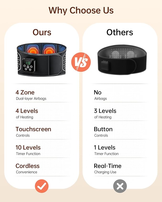 - 【Easy to Operate】The back massager with heat is equipped with a user-friendly touch screen control. A simple touch of your finger allows smooth adjustment of temperature, vibration, and airbag modes. The intuitive interface makes it easy to switch functions.
