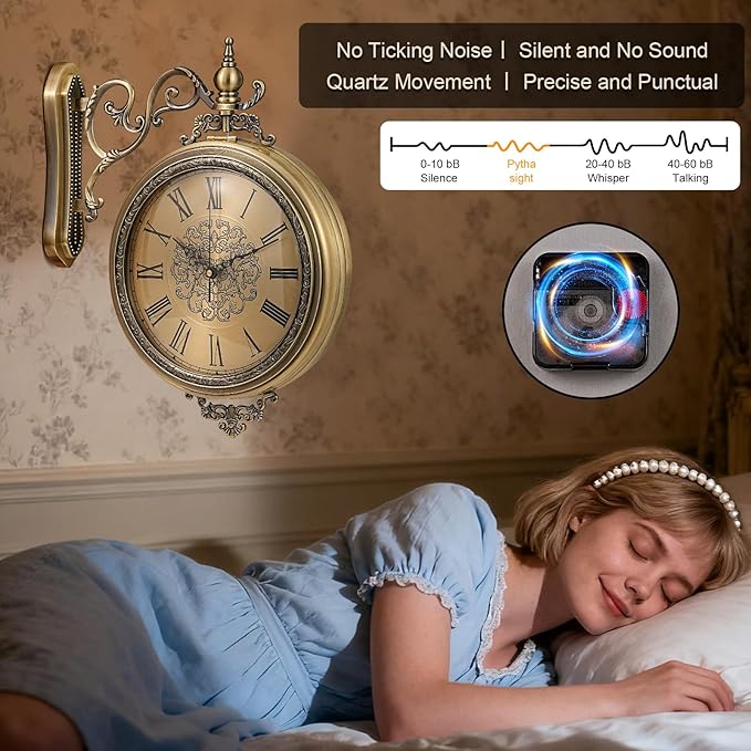 - 🎯 [Double-Sided Vintage Design with Roman & Arabic Numerals] Admire classic elegance from any viewpoint. Our unique double sided wall clock displays sophisticated Roman numerals on one side and clear Arabic numerals on the other. This antique stationary design offers dual visibility in a stunning vintage package, making it a captivating hanging clock for your space.