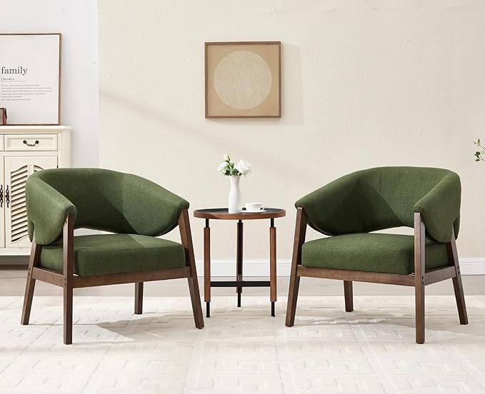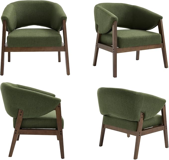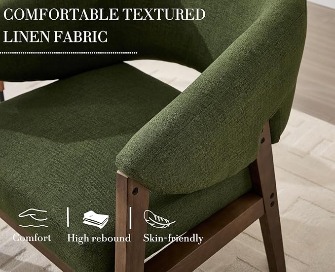 - [Stylish & Breathable Fabric -Sit Pretty, Stay Cool]-Wrapped in a soft, breathable linen-blend fabric, this chair feels as good as it looks. The deep green pairs beautifully with the walnut wood legs, adding a fresh pop of color to any room.