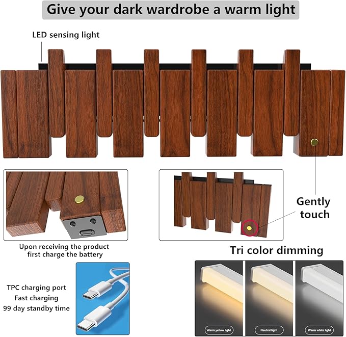 - Handmade Natural Wood: This wooden hanger wall hanging is made of high-quality beech wood, hand polished and painted, known for its durability and charming texture patterns. It is sturdy and durable, capable of withstanding 50lb. The wood color and texture decoration style, dark and light colors look like a row of piano keys, practical and beautiful
