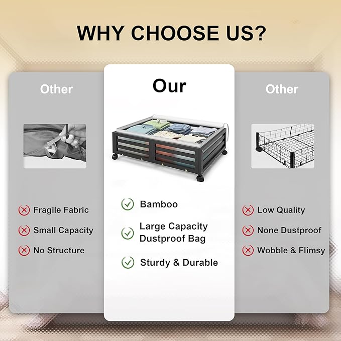 - 【360° Rotating Wheels】Features detachable wheels for easy sliding in and out from under the bed; convenient access in tight spaces