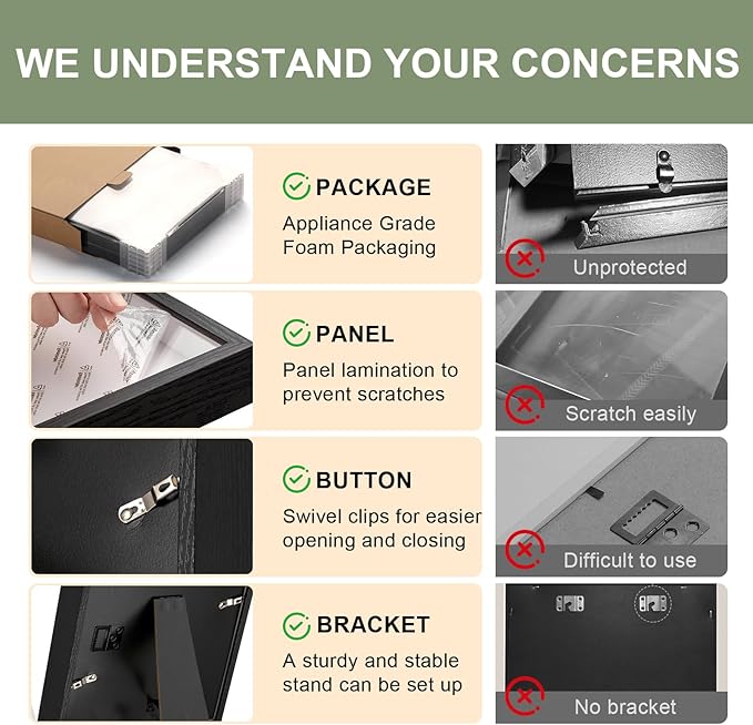 - 【Shock-Resistant Foam Packaging】We understand the importance of a perfect unboxing experience! We've upgraded your shadows box frames packaging: reinforced crush-resistant cardboard box (shockproof) + full plastic seal (dustproof) + reinforced corner protectors (impact-resistant) + dual-sided protective film on the front panel (scratch-proof). We meticulously craft our packaging to ensure you receive your shadowbox picture frame flawless and undamaged,ready to preserve every precious moment of your life. Film Removal Tip: Gently peel from a corner,pressing along the edge to avoid leaving marks and maintain its pristine appearance.