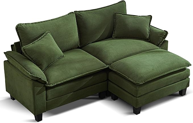 URRED Modular Sectional Sofa Comfy Cloud Couch, Modern Corduroy Sofa Sleeper Deep Seat Couches with Ottoman/Pillows for Living Room (Green, 82.6''- L Shape)
